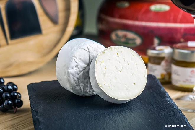 Мягкий сливочный сыр с добавлением сливок, покрытый плотной корочкой из белой плесени