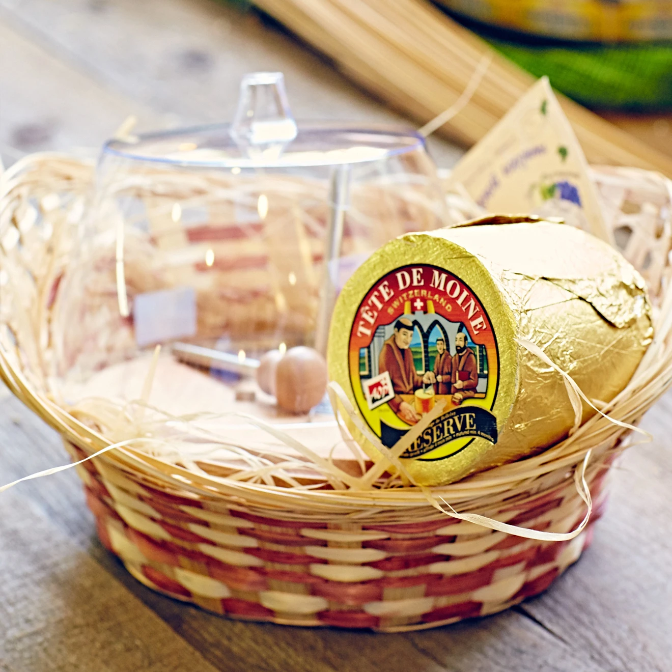 Эту корзину не должен обойти стороной ни один любителей оригинального швейцарский сыра Тет де Муан!