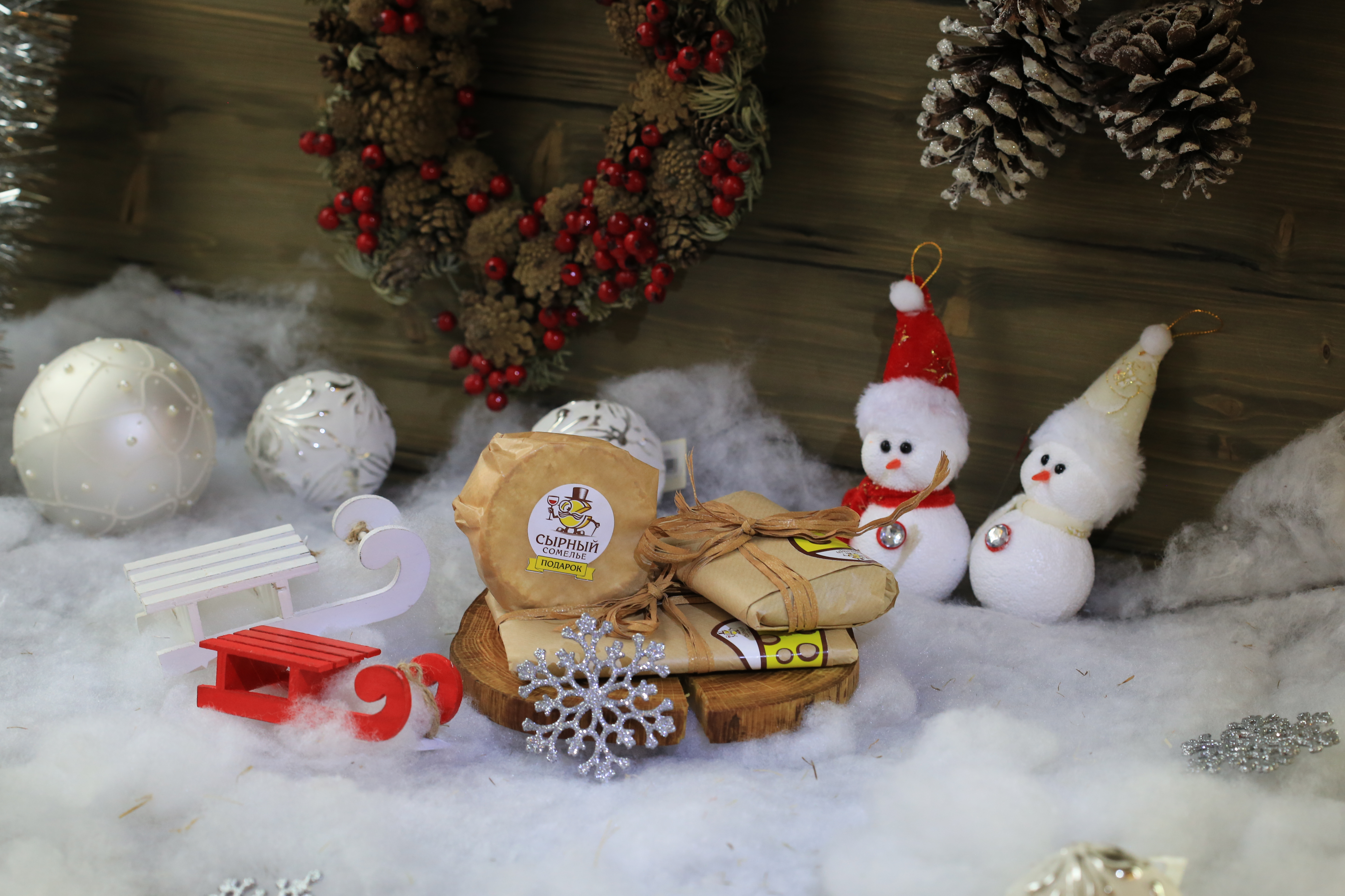 Подарочный набор с тремя видами сыров.