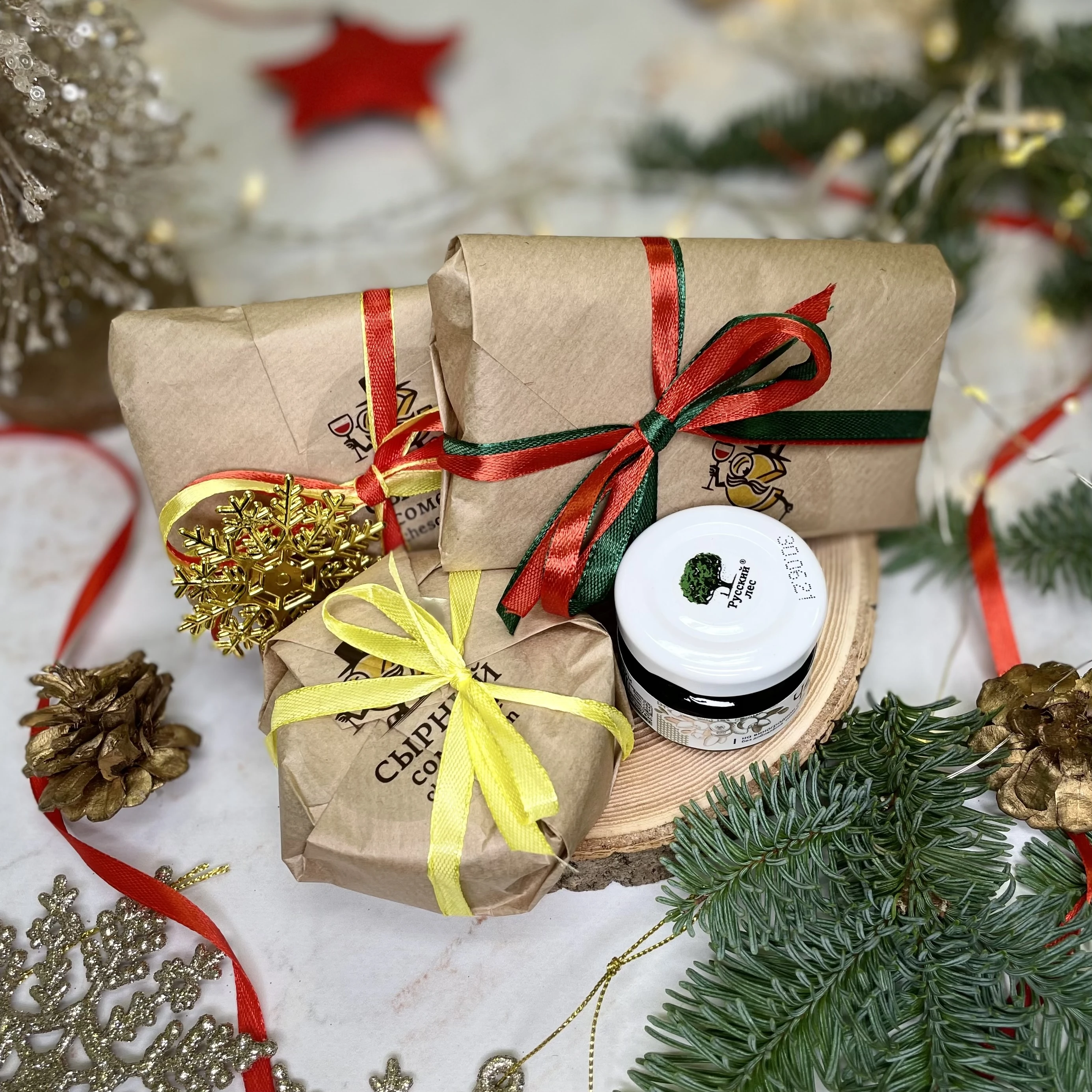 Подарочный набор с тремя видами сыров.