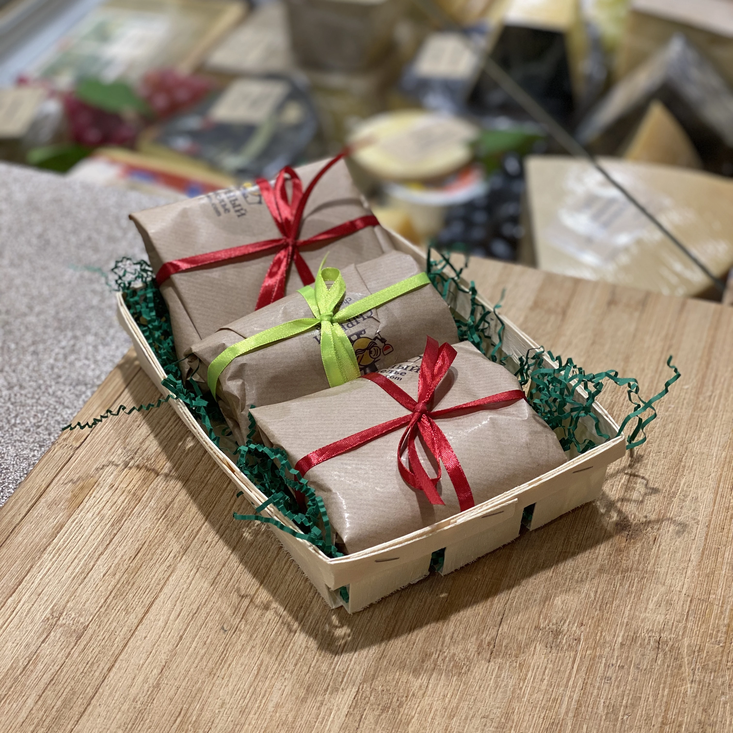 Подарочный набор с тремя видами сыров и фирменным джемом в праздничном оформлении